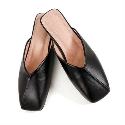 Women Outdoor Sandals Fashion Toe covered Leather Slippers Solid Color Ladies Party Mule Shoes Pretty Casual Indoor Slides