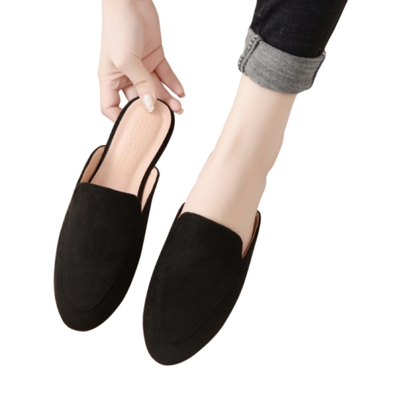 Fashion Women Suede Mules Shoes Ladies Flat Solid Color Casual Sandals Durable Non Slip Half Outdoor Party Slippers